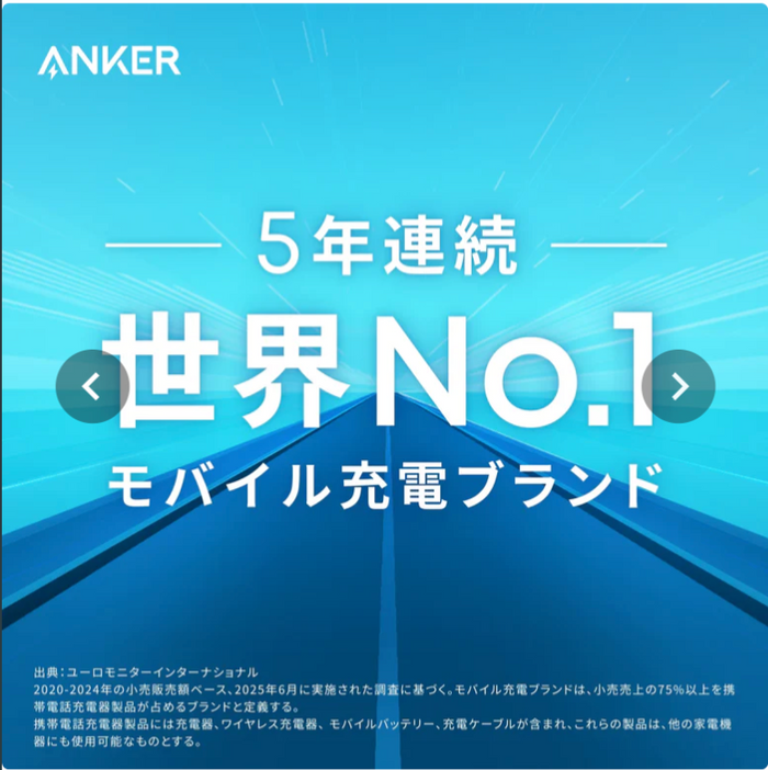 充電関連製品でトップの販売実績を誇る「世界No.1モバイル充電ブランド※1」